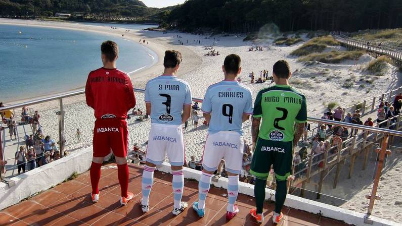 El Celta presentó ayer en las islas Cíes las nuevas equipaciones para la temporada 14/15.