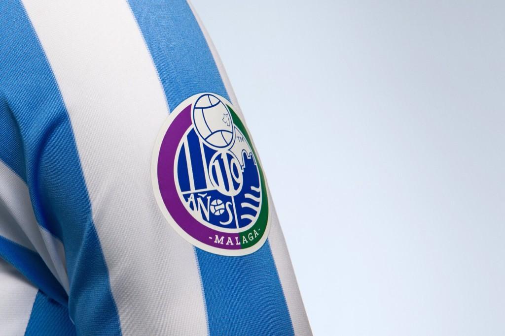 Además el club ha querido que este presente el logo del 110 aniversario,situado en la manga izquierda de la camiseta, representado con los colores de Málaga, el verde y el morado.