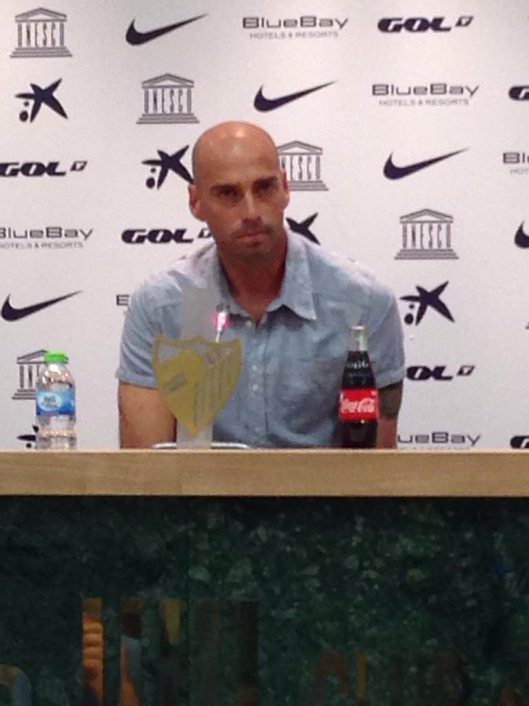 El "mito" tomó la palabra y agradeció todo el cariño y el apoyo dado durante su estancia en Málaga. Sólo salieron de su boca palabras de agradecimiento al club y a la gente: “Tengo más nervios que el primer día que jugué acá. Me toca dar un paso importarme en mi carrera, por mí y mi familia. No me quedan más palabras que dar gracias a un club que me permitió todo esto. Me voy de un equipo donde fui feliz porque me trataron fenomenal, como nunca en ningún lado y ese cariño va a ser irrepetible y lo voy a llevar a donde vaya. En mi corazón llevaré todo el cariño y ojalá que sea recíproco. Siempre intenté dejarlo todo por este equipo y estos colores. Vengo a decir adiós, porque es digno hacerlo de esta manera. Ojalá tenga las puertas abierta para volver algún día, tengo mi casa en Málaga y somos muy felices acá. Parte de mi corazón se queda acá y el otro se va a Inglaterra. Ahora le deseo mucha suerte a todos mis compañeros. Los voy a extrañar a todos e intentaré seguir creciendo como jugador y como persona”