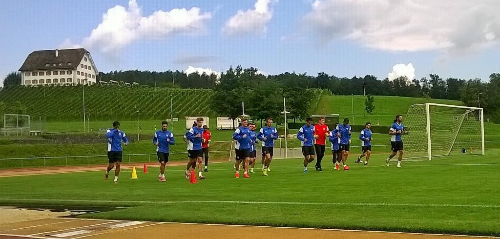 El Málaga realizó hoy una nueva sesión de trabajo en el campo de Freienbanch en Zurich (Suiza), donde se tuvo que retirar el centrocampista Ignacio Camacho, por unos problemas en la rodilla derecha.
